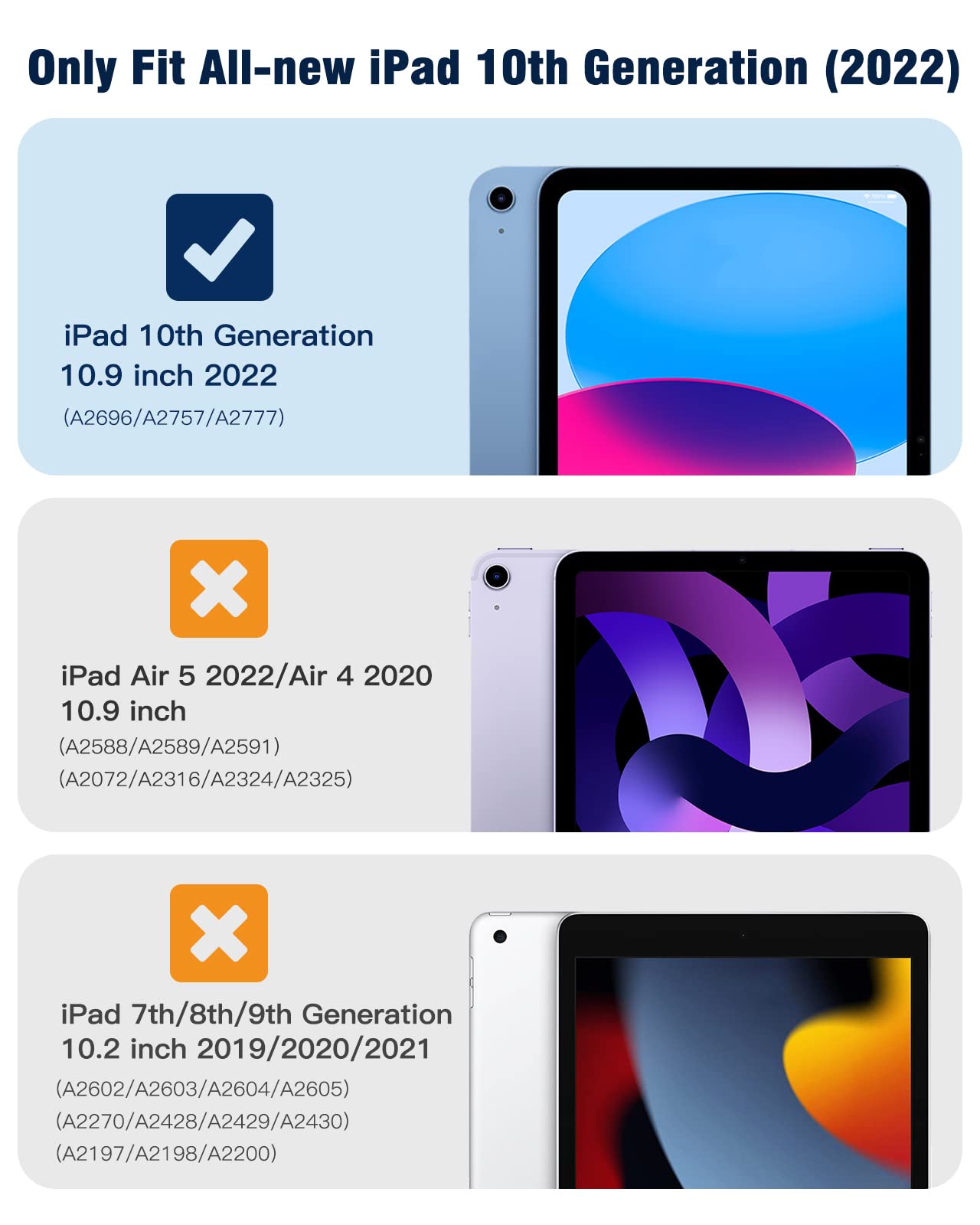 Compatible with iPad 10.9 inch 2022Protective case for iPad Pro 10.9 inch 2022 released tablet, NOT compatible with any other iPad models. Please check back bottom of your iPad to find the model number.